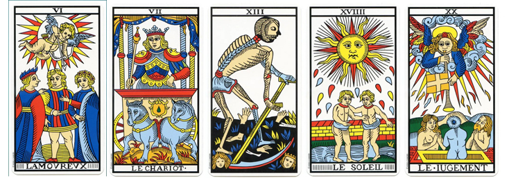 În Tarotul de Marseille, centrul sau ochiul liniștit din inima furtunii, ar fi obținut prin adunarea arcanelor care reprezintă NN și NS într-o astrogramă personală. Cele 2 arcane extreme ar reprezenta zona conflictuală, în timp ce arcana rezultată prin însumarea lor ar simboliza soluția în procesul de mediere dintre ele.